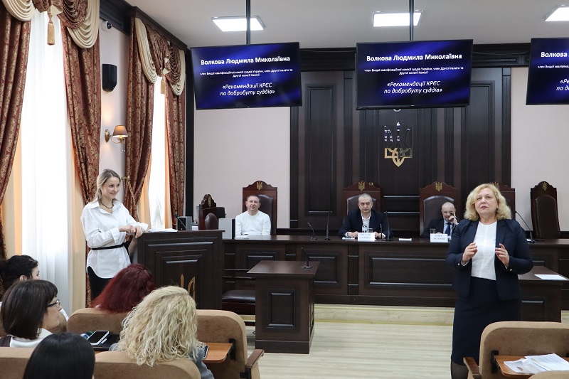 Представники Комісії проінформували присутніх про поточну роботу Комісії та плани на 2026 рік, а також поділилися досвідом і практичними кейсами щодо проведення кадрових конкурсів та регулярного оцінювання суддів.